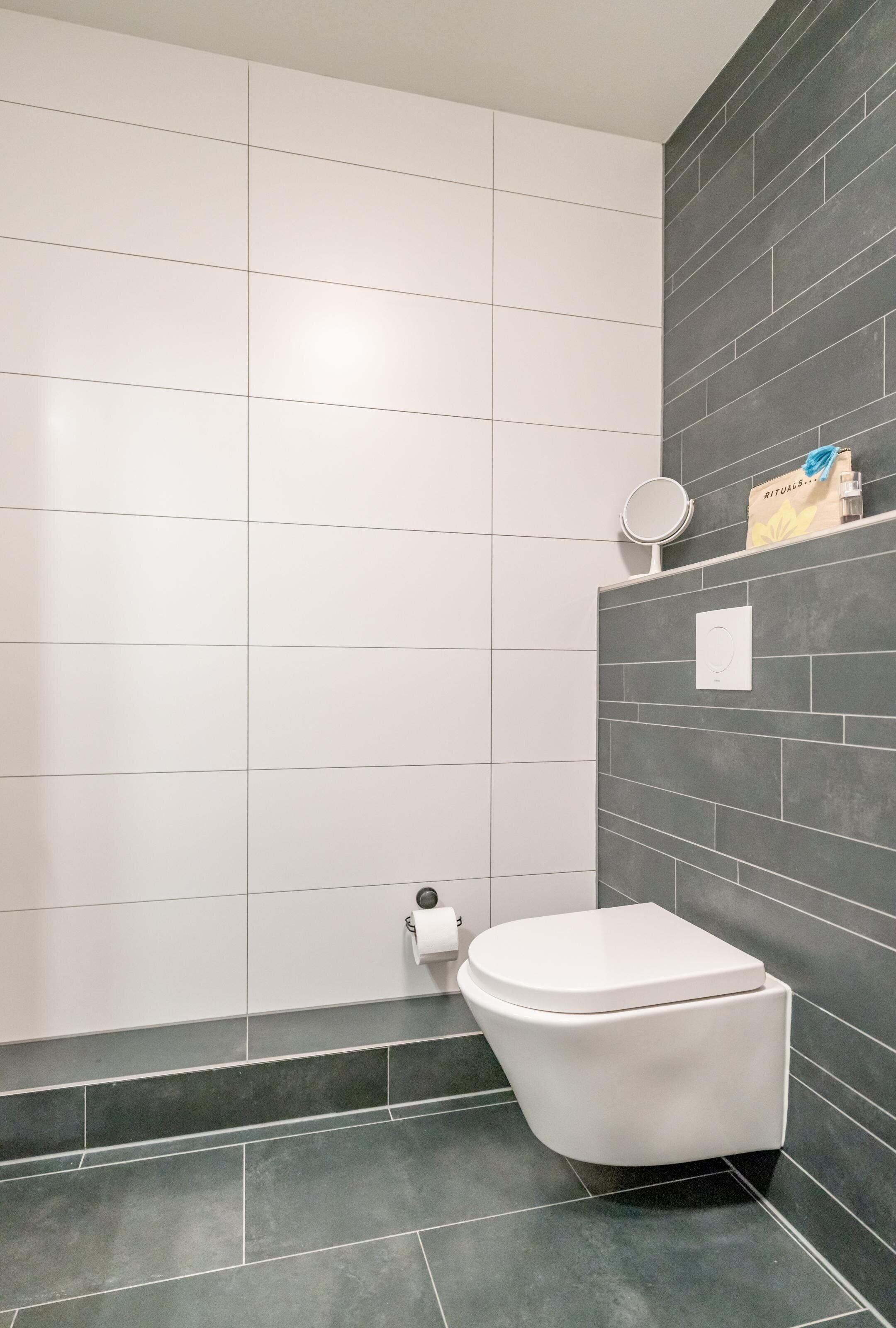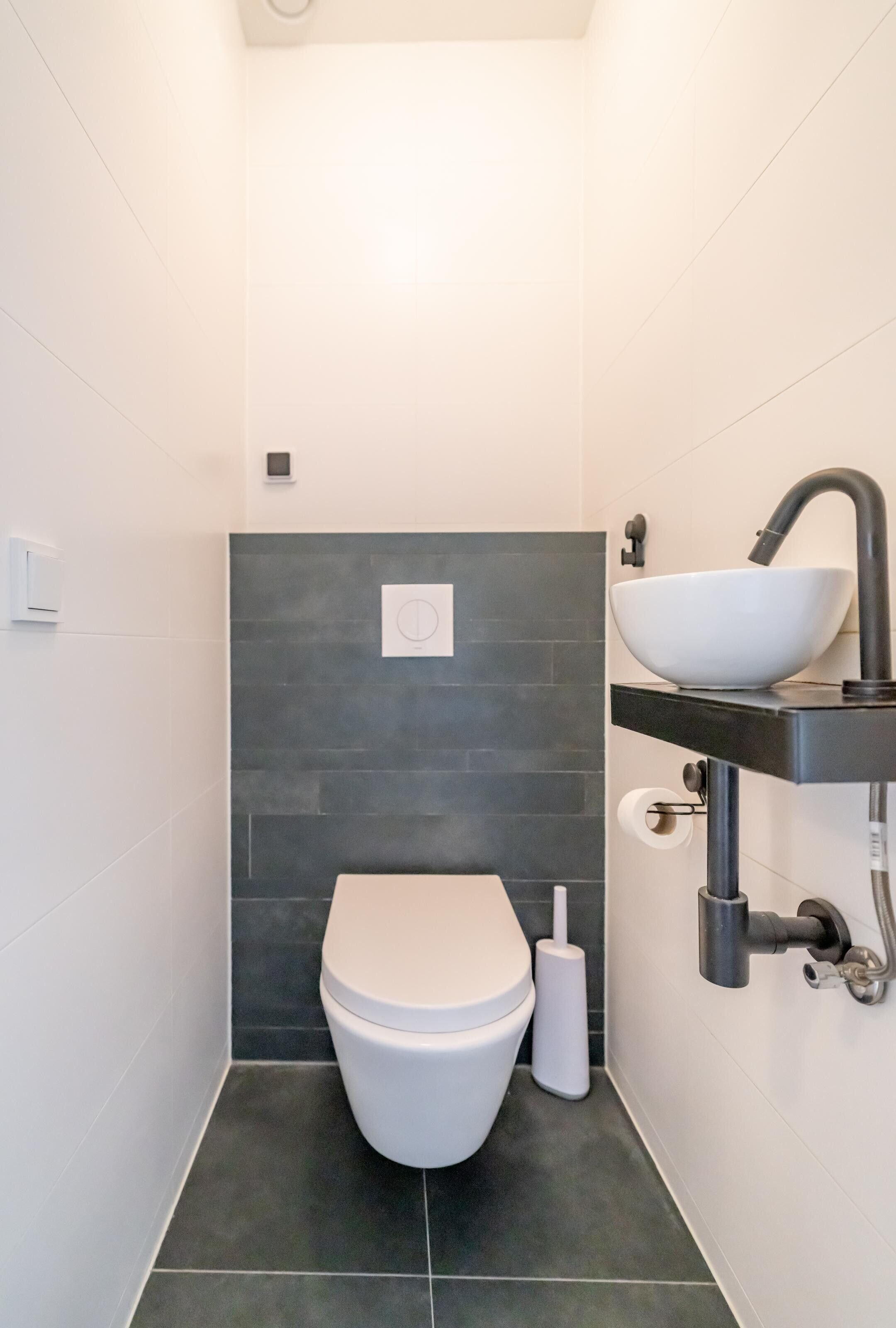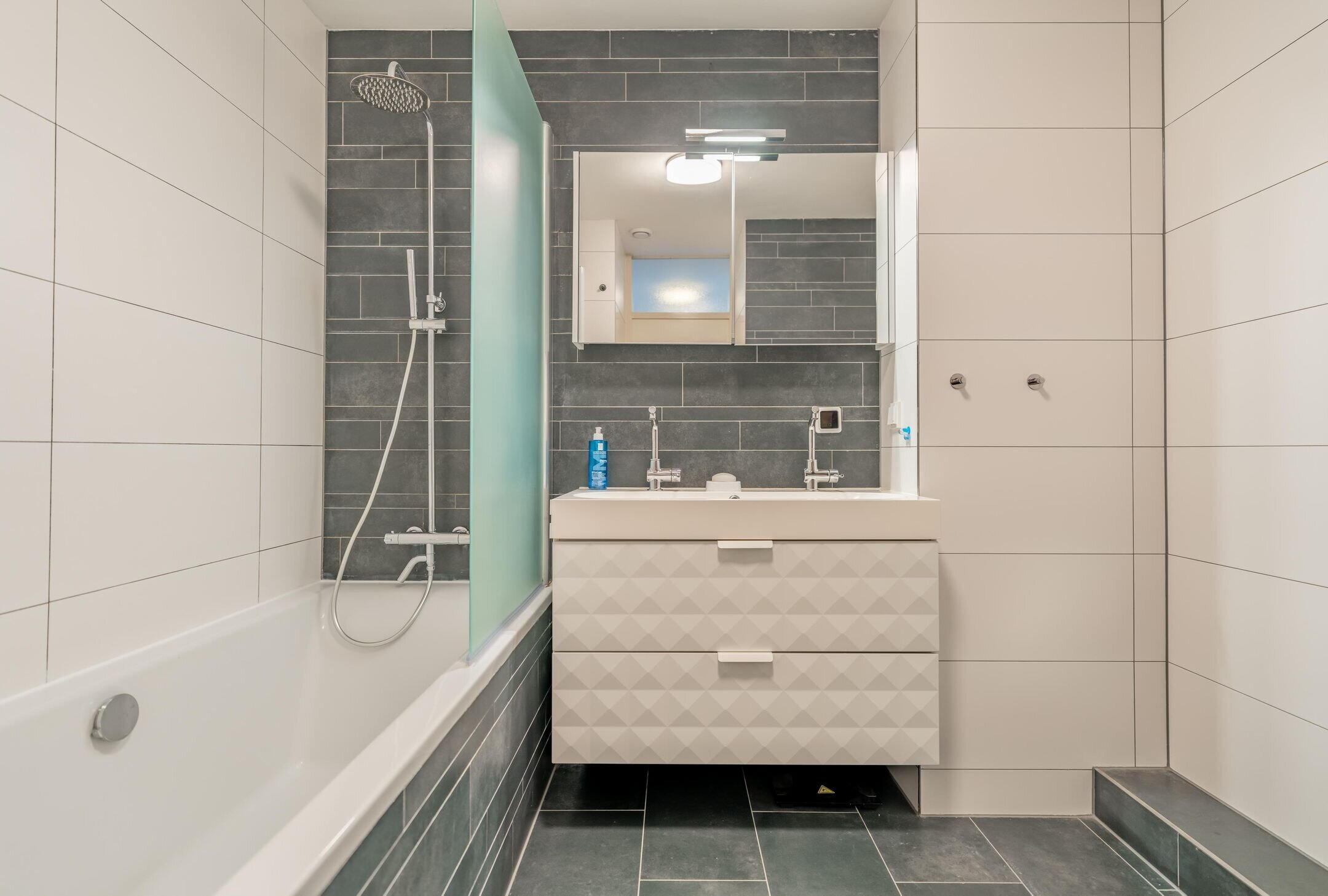 De volledig betegelde badkamer is modern uitgevoerd en voorzien van vloerverwarming, een ligbad met douche, een dubbel wastafelmeubel, een tweede toilet en een designradiator. Daarnaast is er een separaat gastentoilet in dezelfde stijl ook voorzien van vloerverwarming.